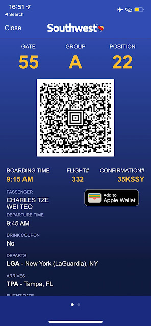 Flying Southwest Airlines has been in my mind for a long time due to its popularity among the locals in the U.S. I managed to find a suitable time in New York to do this one-day trip, just that I had to sacrifice one day of sightseeing. I decided on New York LGA (La Guardia) to Tampa. Why LGA? I wanted to experience the airport for myself and also Southwest only flies out of New York from this airport. Just as I thought that I would be flying on Southwest Airlines, unfortunately, mother nature decided otherwise for me on that day.