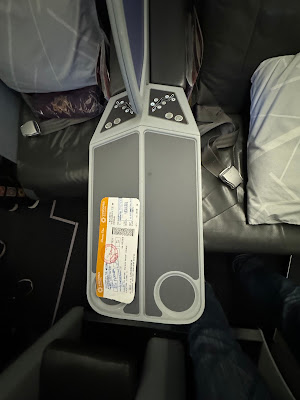 The bus ride was uncomfortable due to the full load, but luckily it was a short one. When we reached our aircraft, we were the first batch to board so that gave me a chance to explore the cabin. Unlike the A320neo, this aircraft is configured with IFE screen entertainment for every seat and lie-flat bed for the business class cabin and this product is familar to me as I had experienced it before with Copa Airlines and that flight was also a long flight for a narrow-body, about 23 minutes longer than this flight (5 hours 37 mins). Anyway, once I settled down, the cabin crew came to distribute the menu and also an amenity kit. Personally I prefer to receive amenity kit and if I don't want or need it, I could just return to the crew, just my personal opinion.